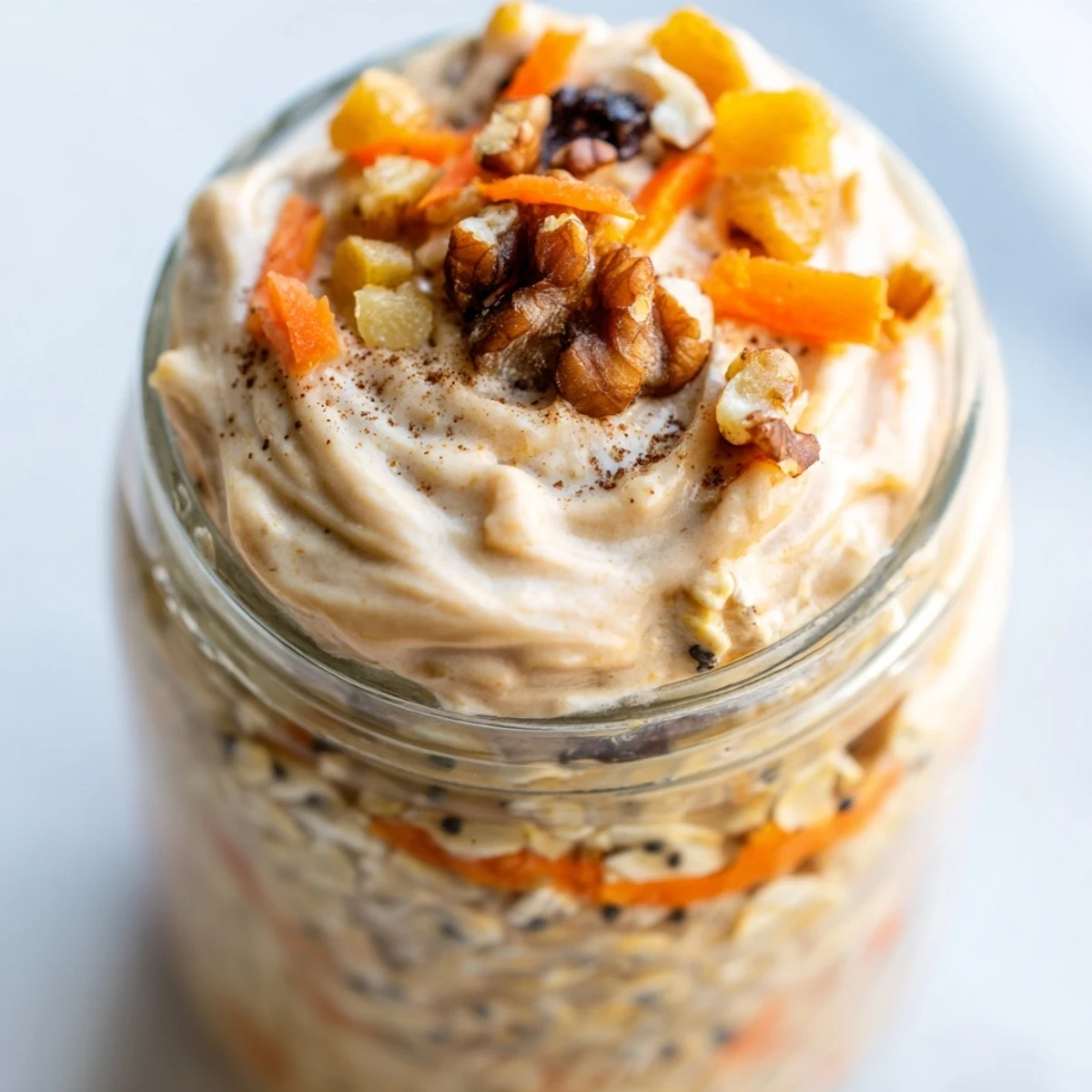The frosting is completely optional but adds that authentic carrot cake experience. The combination of softened cream cheese and maple syrup creates a tangy-sweet topping that mimics traditional cake frosting. For a lighter version, simply swirl in Greek yogurt or skip the topping entirely—the oats are delicious on their own.