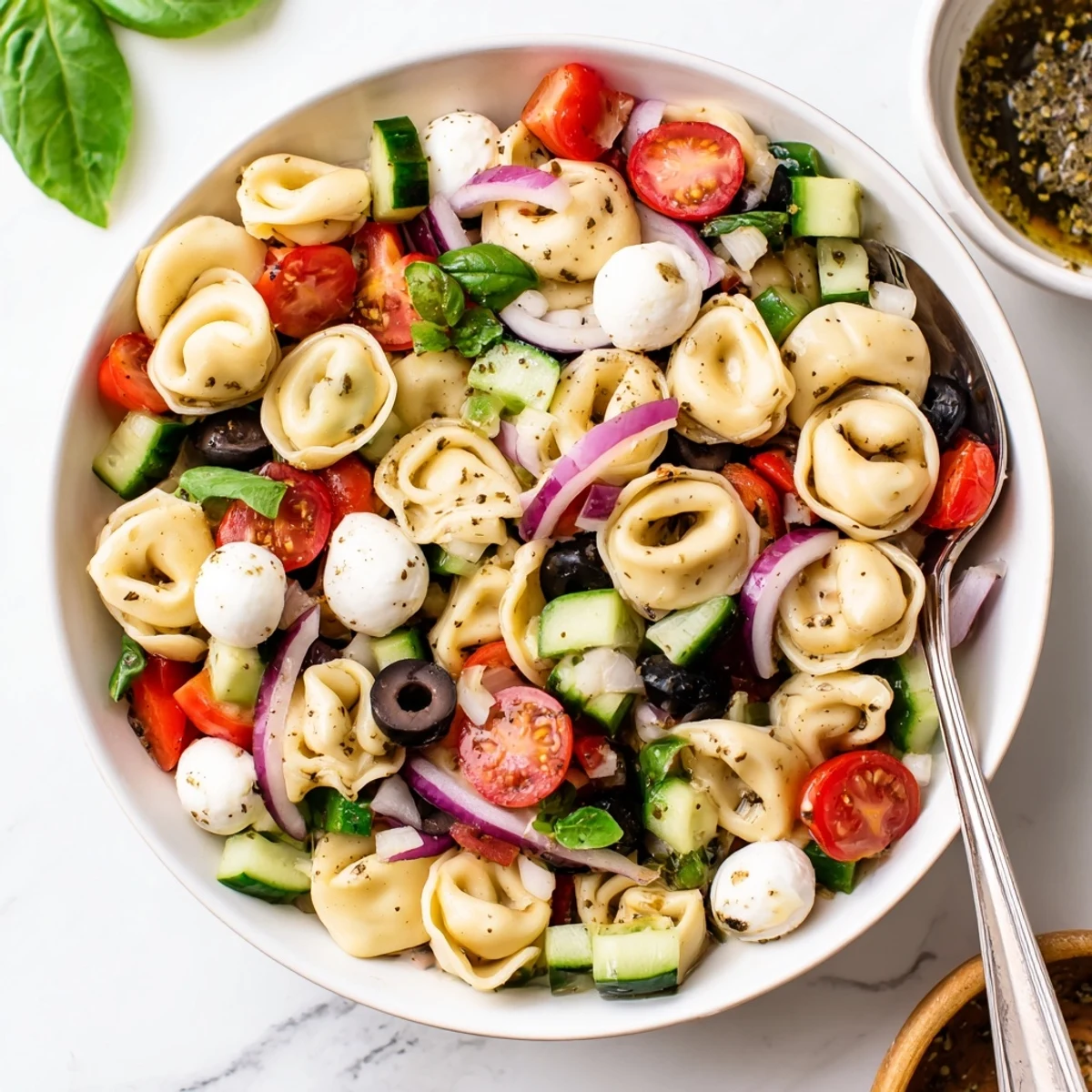 This colorful dish brings together cheese-filled tortellini, cherry tomatoes, cucumber, bell peppers, and fresh mozzarella in a tangy homemade dressing. Ready in just 22 minutes, it's ideal for warm weather gatherings, meal prep, or a light yet satisfying main course.